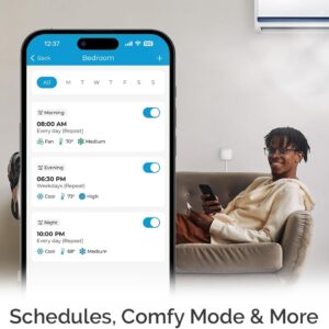 SMALL IN SIZE, BIG IN BENEFITS: Sleek, small and non-intrusive smart AC controller that can blend easily in any room. Mighty features inclusive of weekly scheduling, Comfy Mode, geofencing, usage history, air filter status & more work like magic for an ideal home environment.